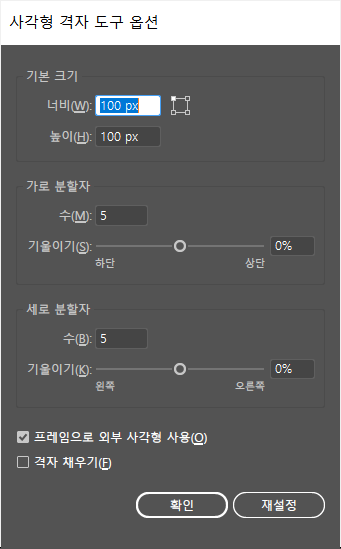 ㄴ> 5. 기본 크기와 가로 세로 분할자 수 조정